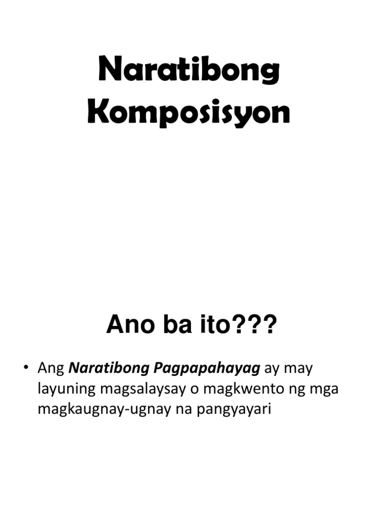 Gamit ang powerpoint, uunawain ng mga mag-aaral kung ano ang naratibong komposisyon.